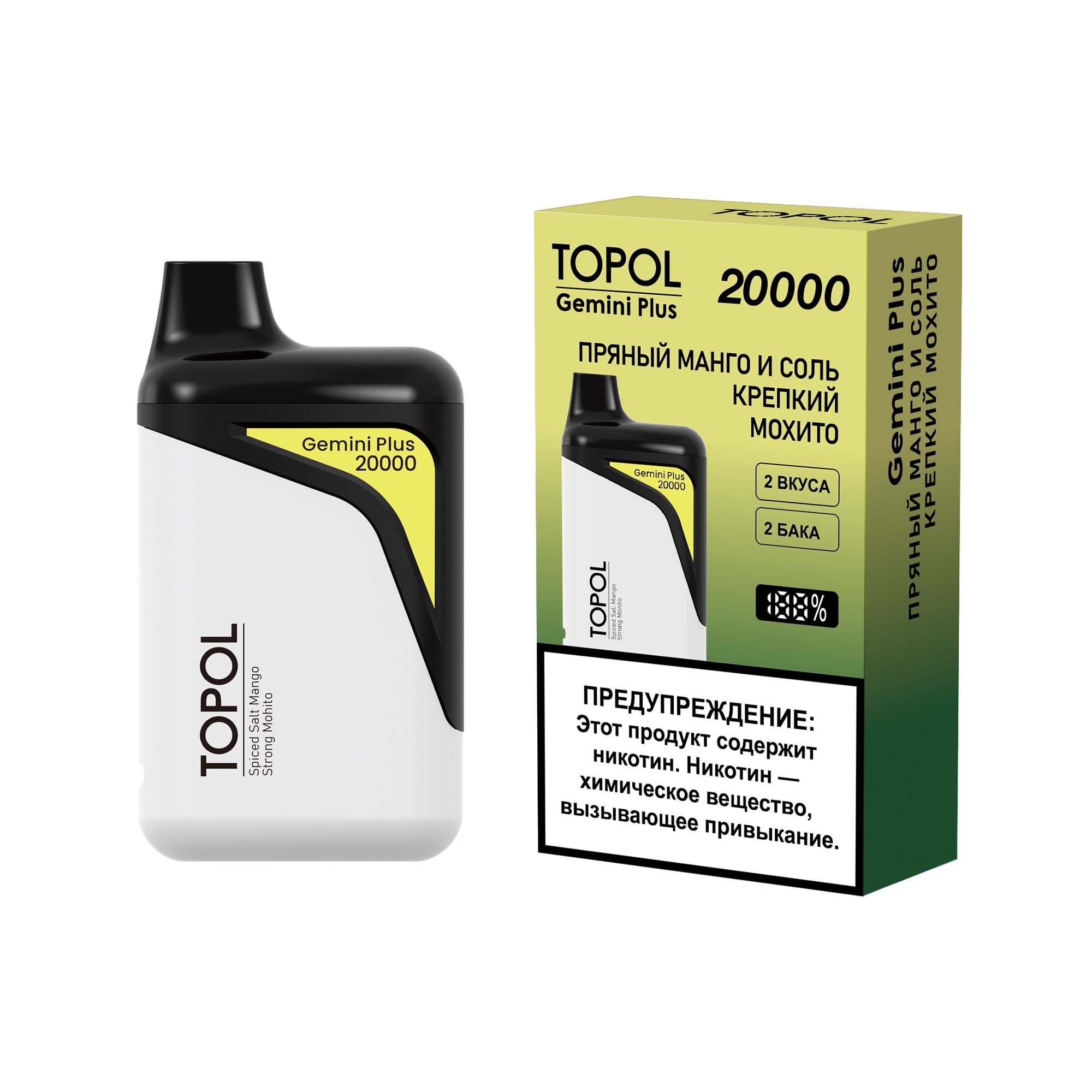 Одноразовая ЭС Topol Gemini Plus (20 000 тяг) - Пряный манго, Соль / Крепкий мохито