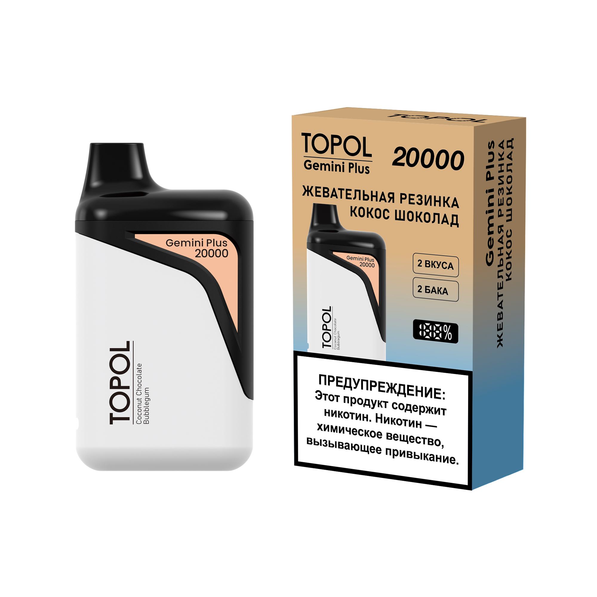 Одноразовая ЭС Topol Gemini Plus (20 000 тяг) - Жевательная резинка / Кокос и шоколад